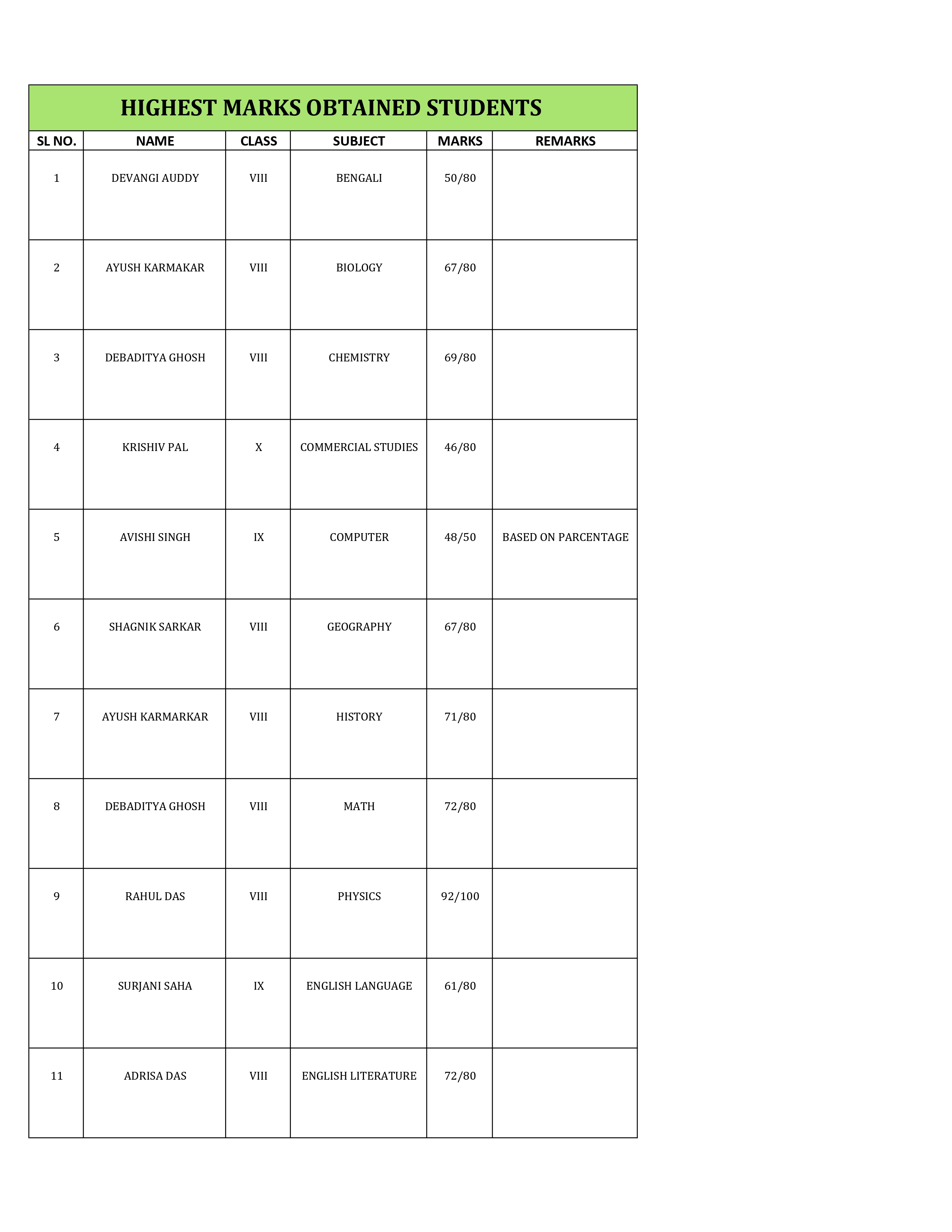 HIGHEST MARKS OBTAINED STUDENT LIST OF TEST YOUR PREP 2.0